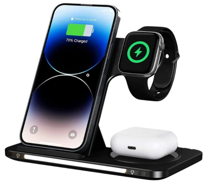 Chegou a Estação de Carregamento Sem Fio LED 3 em 1 – Indução, a solução definitiva para quem quer praticidade, tecnologia e estilo na hora de carregar seus dispositivos.